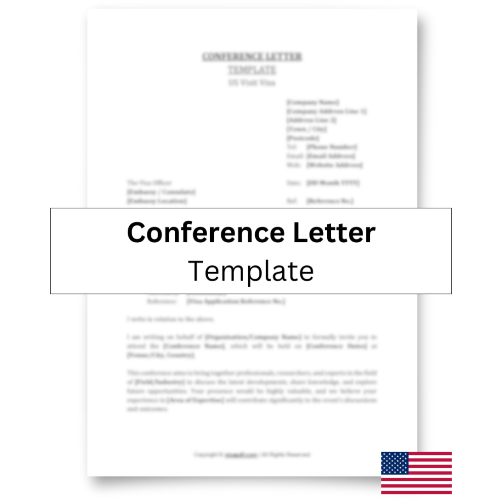 The Conference Letter Template (US Visit Visa) is a professionally drafted document designed to support US B-1/B-2 visitor visa applications by formally confirming an overseas applicant’s invitation to attend a conference, seminar, workshop, or professional event in the United States. This template helps event organisers, host institutions, or sponsoring entities clearly set out the purpose, duration, and legitimacy of the visit in a format suitable for US Consular review.