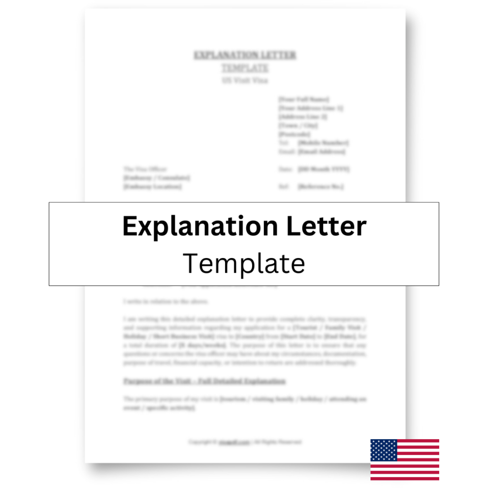 This explanation letter template is provided for general guidance purposes only and is based on commonly accepted US visit visa documentation practices. Consular requirements may vary, and final decisions rest solely with the visa officer. Use of this template does not guarantee visa approval, but it significantly improves the clarity and professionalism of your application.