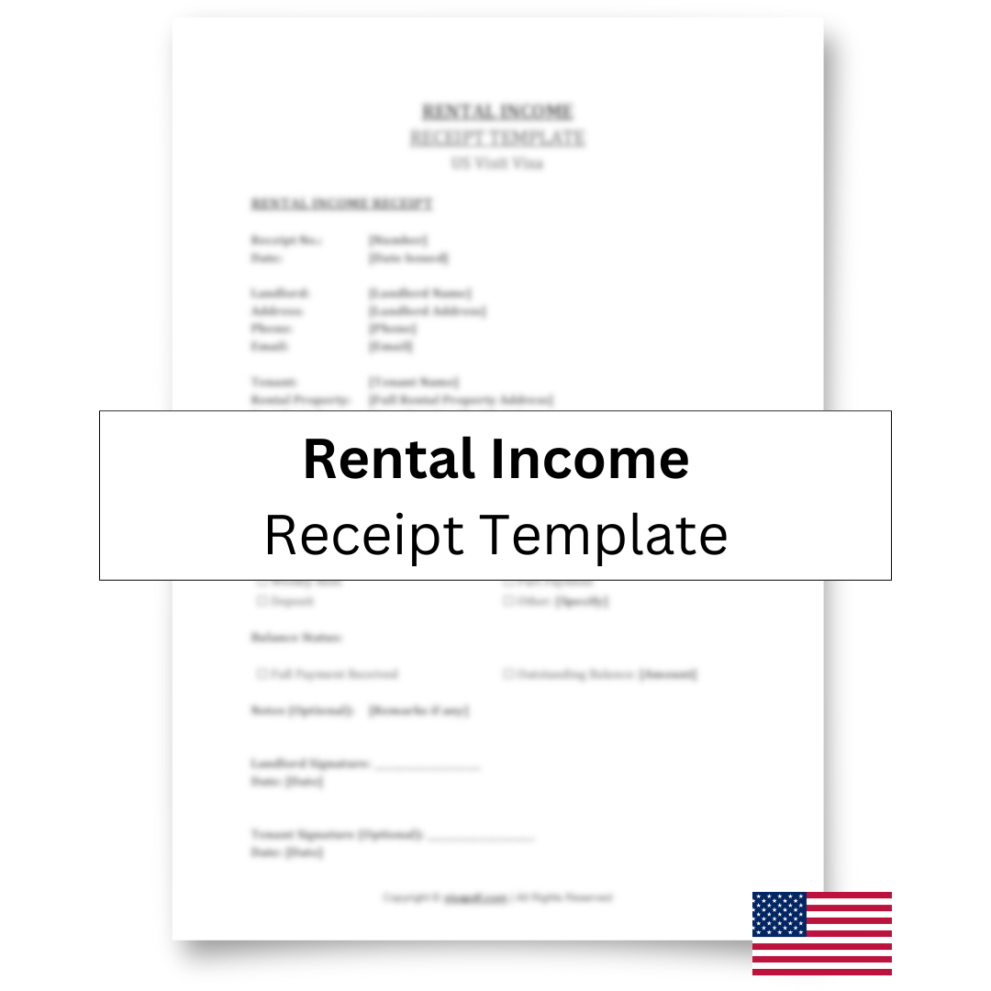 Download the Rental Income Receipt Template (US Visit Visa) today and support your visitor visa application with a clear, professional, and credible rental income document.