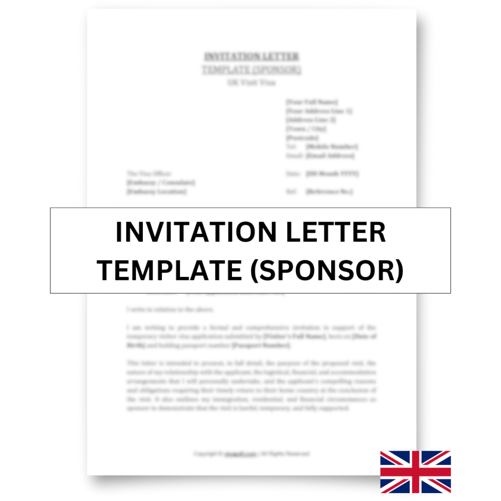Strengthen your UK Visit Visa application with our professionally drafted Invitation Letter Template (Sponsor)—a detailed, fully editable document designed to support all Standard Visitor Visa applications. This premium template provides a clear, complete, and UKVI-compliant invitation letter that sponsors can use to invite a family member, friend, or relative to the United Kingdom. It covers …